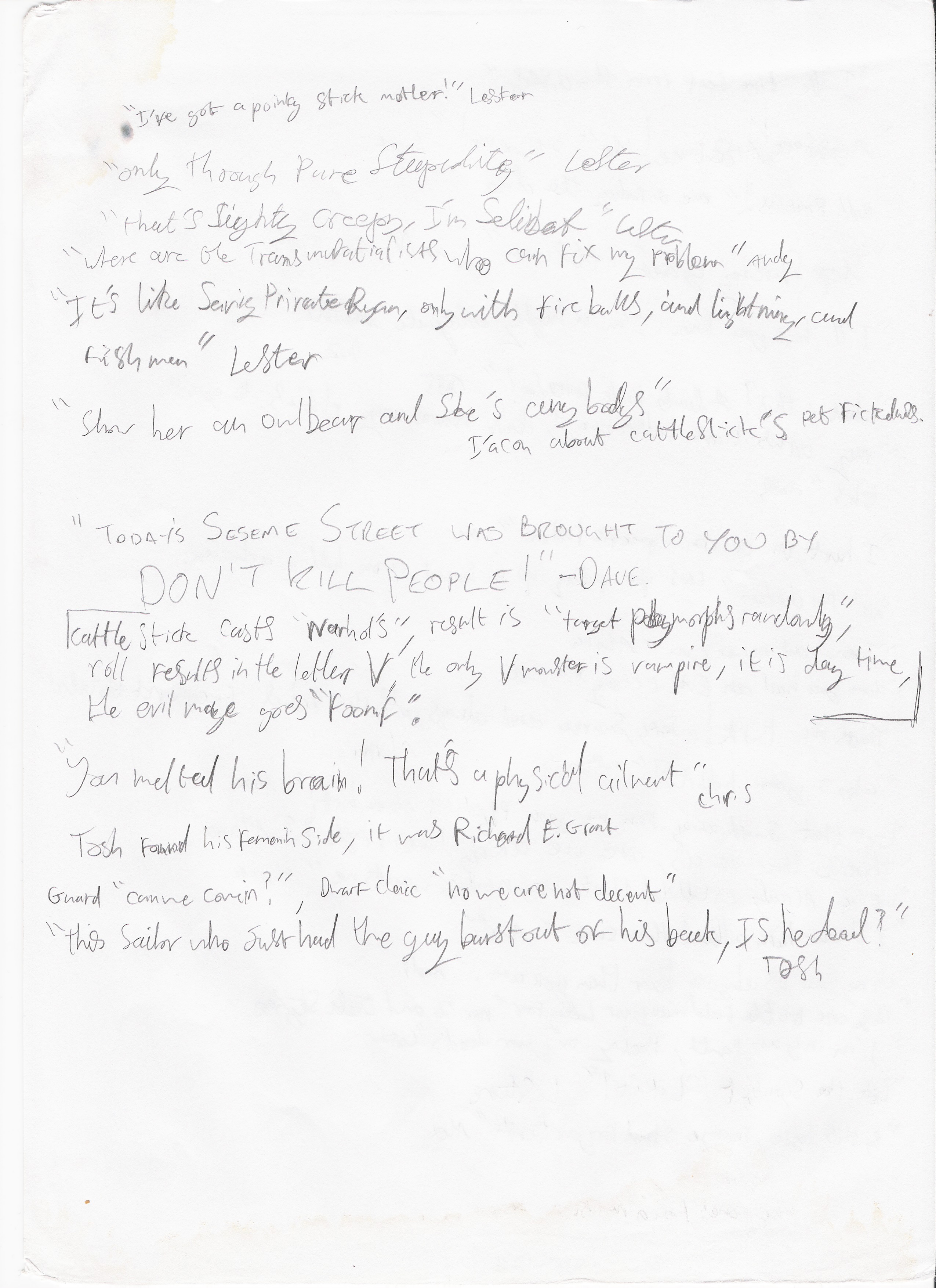 “I haven’t seen you touching it, I thought you’d forgotten” – Lester, D&D?